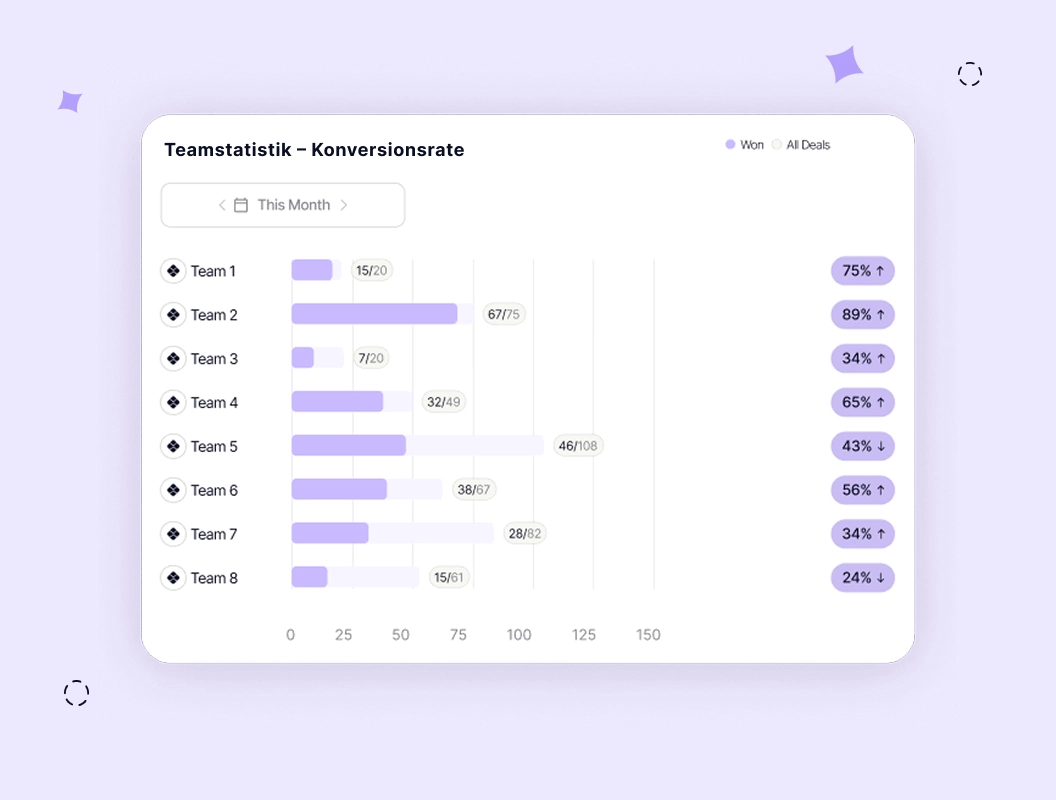 Behalten Sie die Performance über Ihr gesamtes Portfolio im Blick: Welche Teams brauchen Fokus? Welche Ansprache funktioniert? Das Monitoring über alle relevanten Artefakte hinweg macht Fortschritt sichtbar – und zeigt, wo die grössten Hebel liegen.